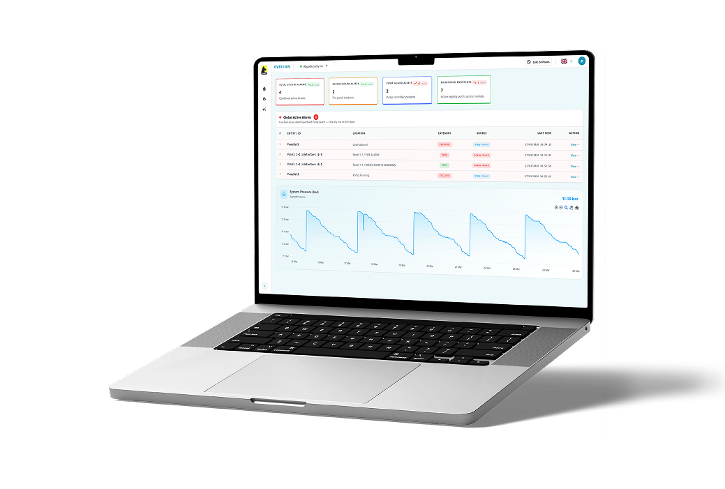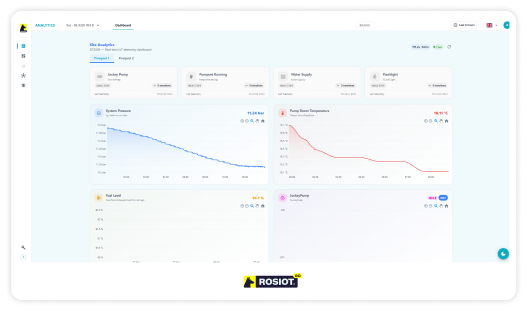 Rosiot GO connects to your existing fire alarm panel and pump controller. It reads your system data passively, sends it securely to the cloud and makes it available in the Rosiot HUB — on any device, from anywhere. Without changing how your system works.